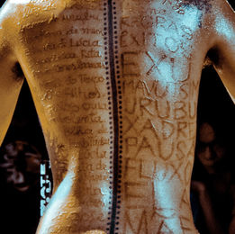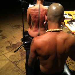 Um processo de falatório e escritura escarificada na pele reunindo escritos acerca de histórias familiares, acontecimentos de 2013, episódios registrados em escritas de fluxo livre. Apresentação durante a residência artística Promptus (BR/MX).